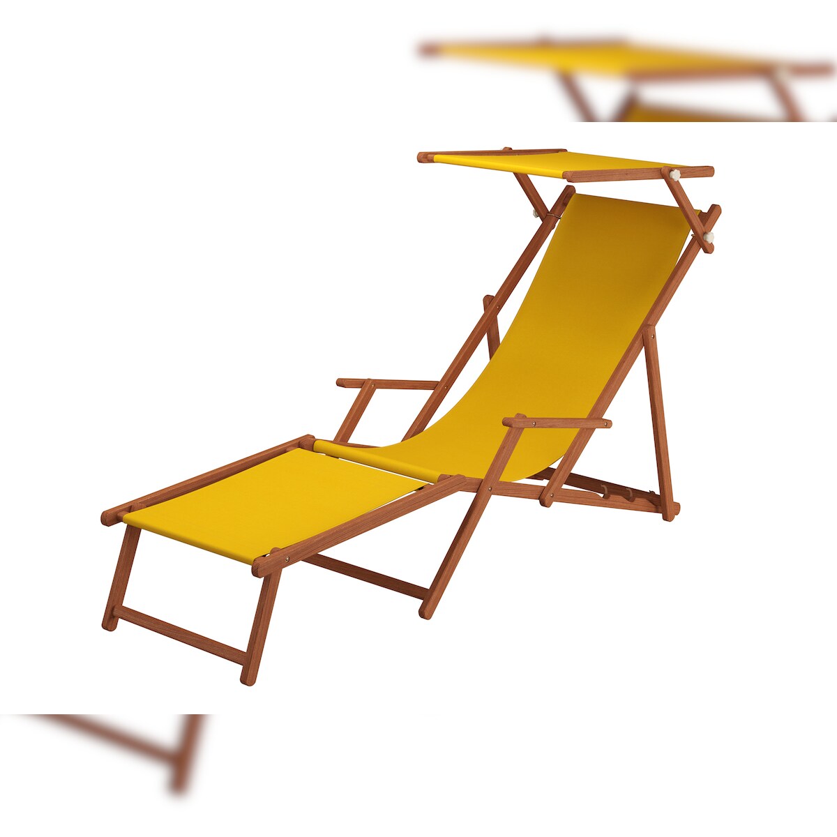 Erst-Holz Sonnenliege gelb Liegestuhl Fußteil Sonnendach Kissen Holz Deckchair Gartenmöbel 10-302 F S KH