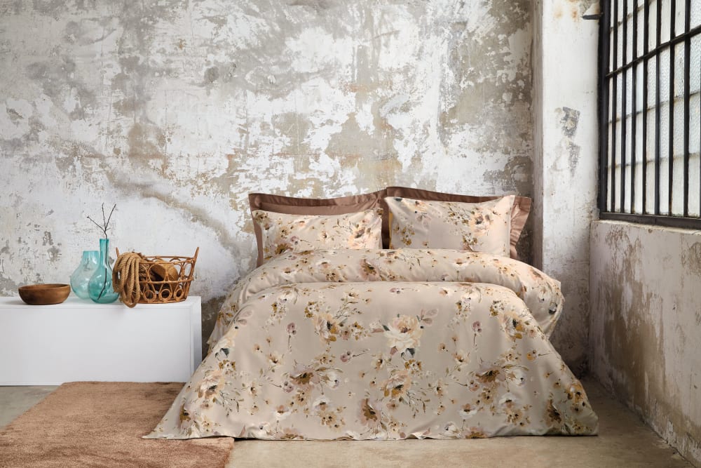 Completo Copripiumino in Raso di cotone Tea Matrimoniale Dreaming Floreale Caleffi