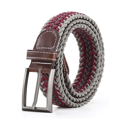 Cintura elasticizzata intrecciata da uomo con trama in poliestere multicolore – cintura elastica casual con punta in pelle per jeans, golf e abbigliamento quotidiano