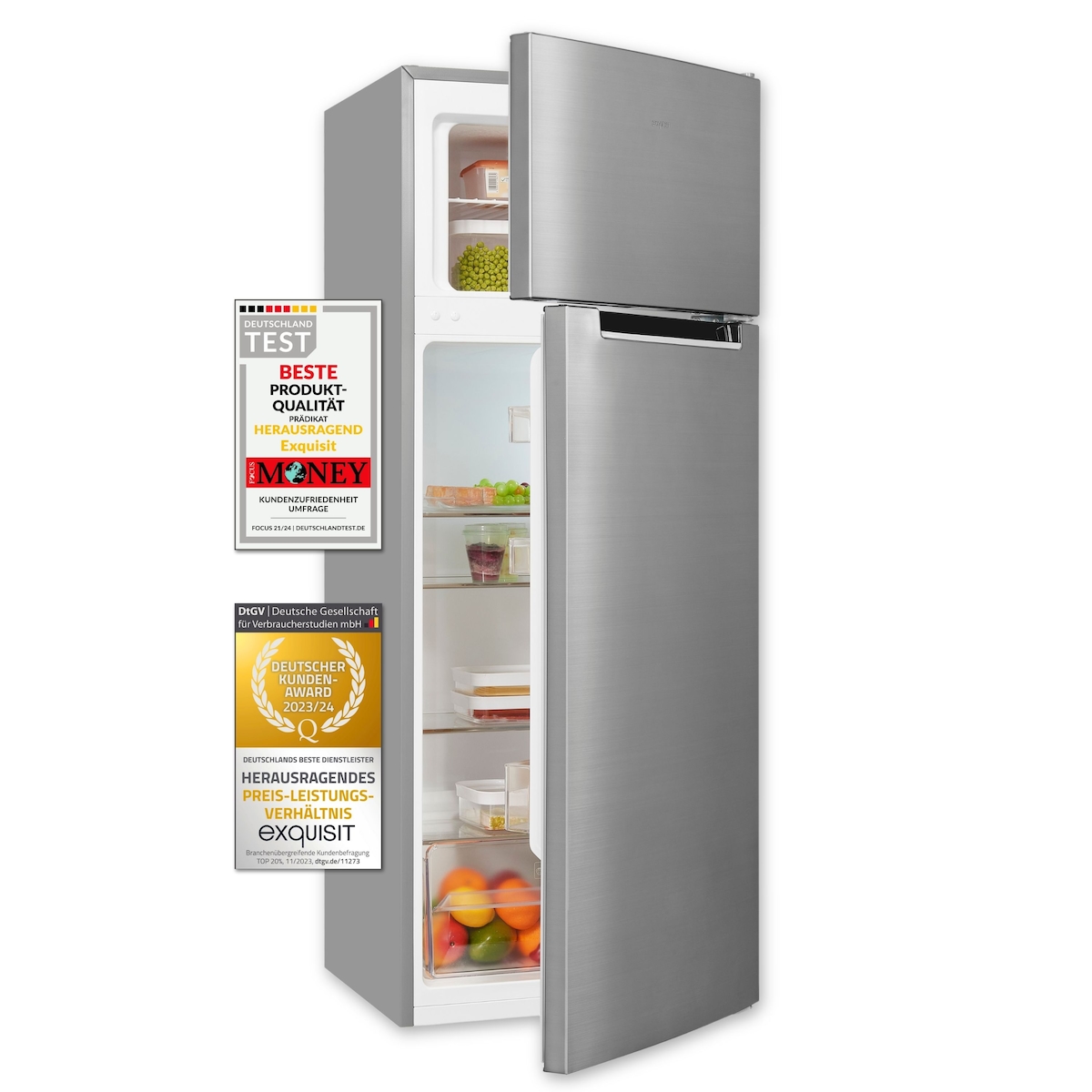 Exquisit Kühl- und Gefrierkombination KGC270-45-040E inoxlook | 206 l Volumen | Kühl-Gefrier-Kombination Türanschlag wechselbar