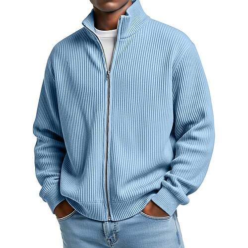 Per uomo Felpa Maglione lavorato a maglia A coste Maglia Standard Tasche Dita intere Con onde Bavero Stile dei soldi vecchi Casual / quotidiano Andare Abbigliamento Corte Primavera estate Nero Blu