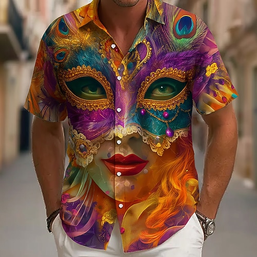 Martedì grasso Per uomo Maschera Carnevale Perline Camicia Camicia Estiva Camicia con Bottoni Manica Corta Moda Casual Feste Ferie Estate Primavera Collo ripiegato Stampa 3D camicie con colletto Una