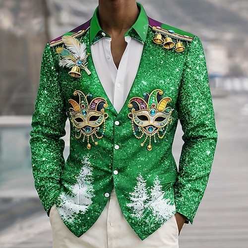 Martedì grasso Per uomo Maschera Carnevale Perline Camicia Camicia con Bottoni Manica Lunga Moda Casual Feste Ferie Primavera Autunno Collo ripiegato Stampa 3D camicie con colletto Blu Viola Verde