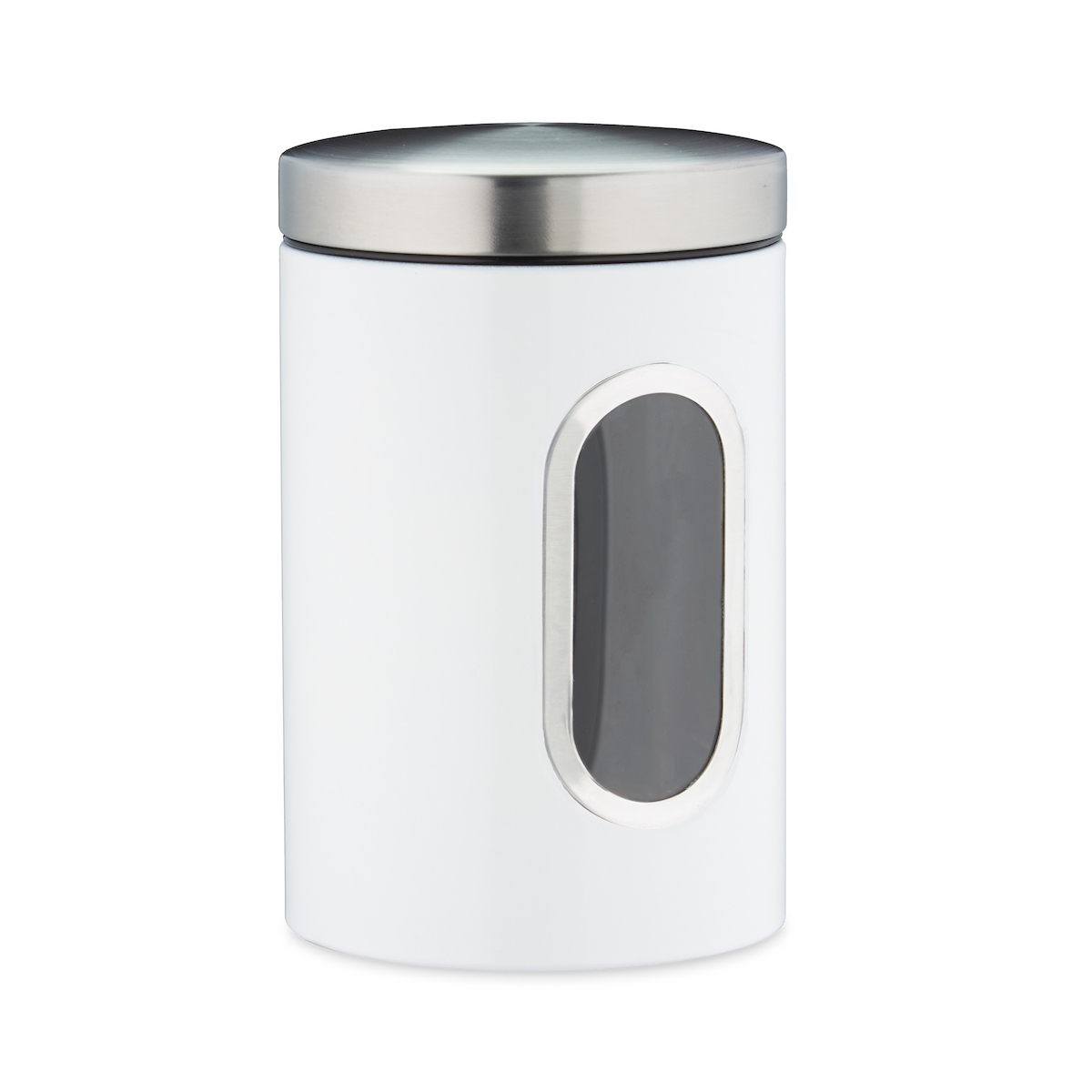 Relaxdays Vorratsdose, mit Deckel & Sichtfenster, 1,4 L, für Kaffee, Mehl, Pasta, Aufbewahrungsdose Küche, Metall, weiß