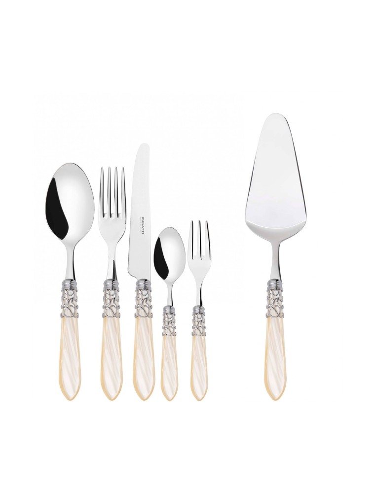 melodia verchromter ring, weißer griff, 24-teiliges besteckset, galeriebox, casa bugatti