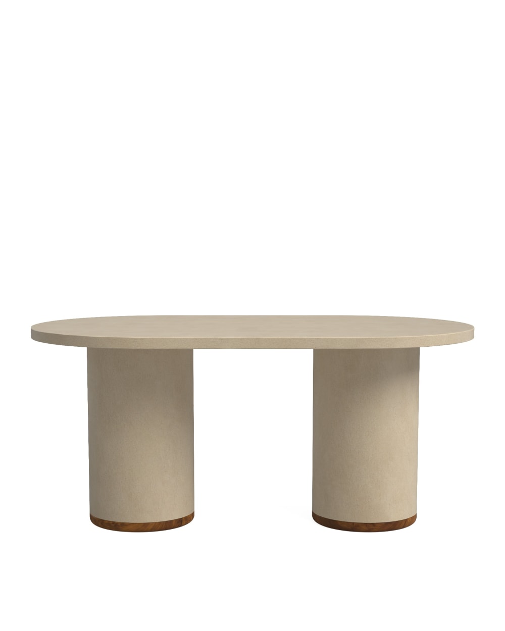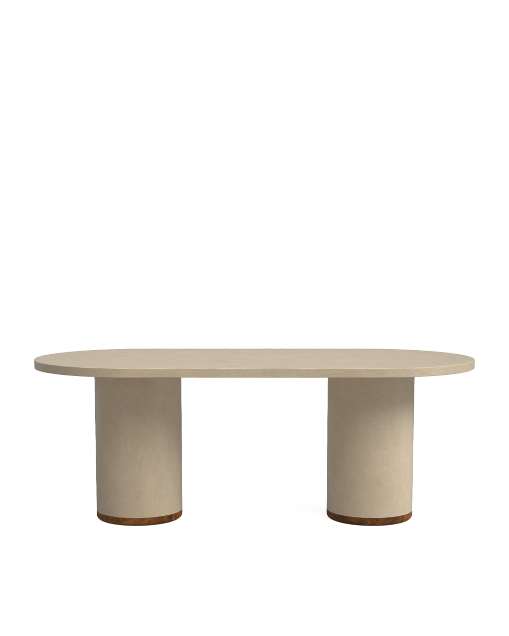 Decowood Mesa de comedor ovalada de microcemento en tono blanco roto 160x75cm