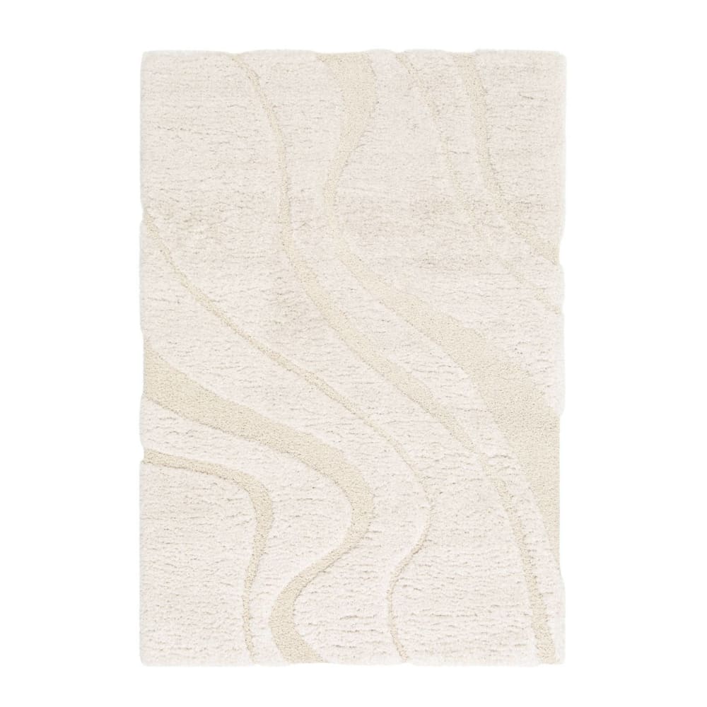 Tappeto rettangolare a pelo lungo con motivo etnico beige 160x230 cm