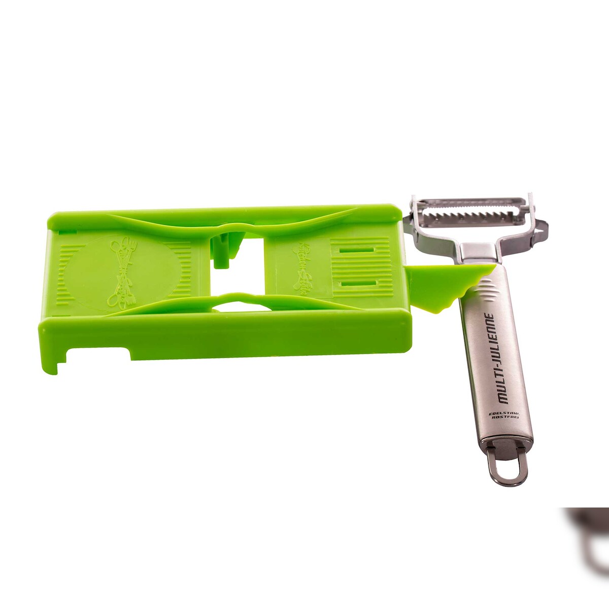 Muxel Julienne-Schäler mit Hobelplatte Hobelaufsatz Julienneschneider Zoodles Hobel Grün