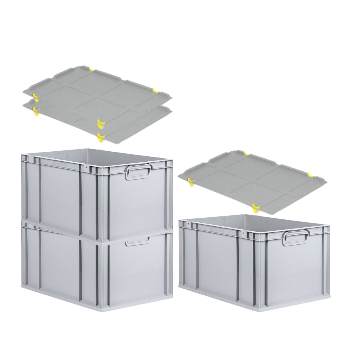 PROREGAL SuperSparSet 3x Eurobox NextGen Economy mit Auflagedeckel & 4x Verschlüsse Gelb, Griffe zu, HxBxT 32x40x60cm, 65L, Eurobehälter, Box