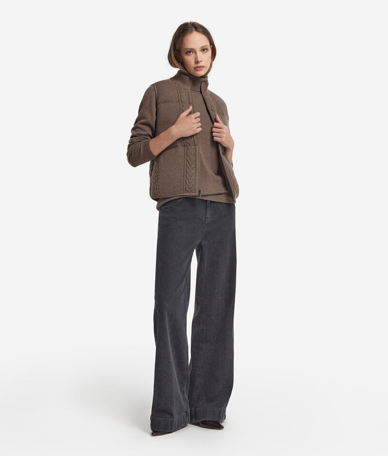 Falconeri Piumino smanicato reversibile con trecce in cashmere Donna Tortora Melange Taglia M