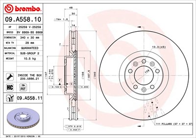 Brembo 1x Bremsscheibe [Hersteller-Nr. 09.A558.11] für Peugeot, Peugeot (df-psa), Citroën