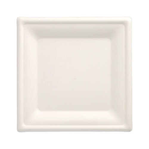 PAPSTAR 50 Teller, Zuckerrohr "pure" eckig 20 cm x 20 cm weiss (89744, 50 Stück)