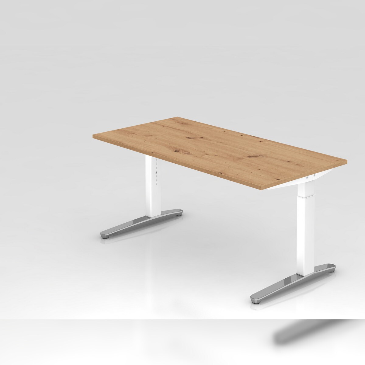 PROREGAL Schreibtisch Mika | Asteiche | Weißes Gestell poliert | BxT 160x80cm | Arbeitshöhe 65-85cm | höhenjustierbar, 1cm Raster | C-Fuß-Gestell