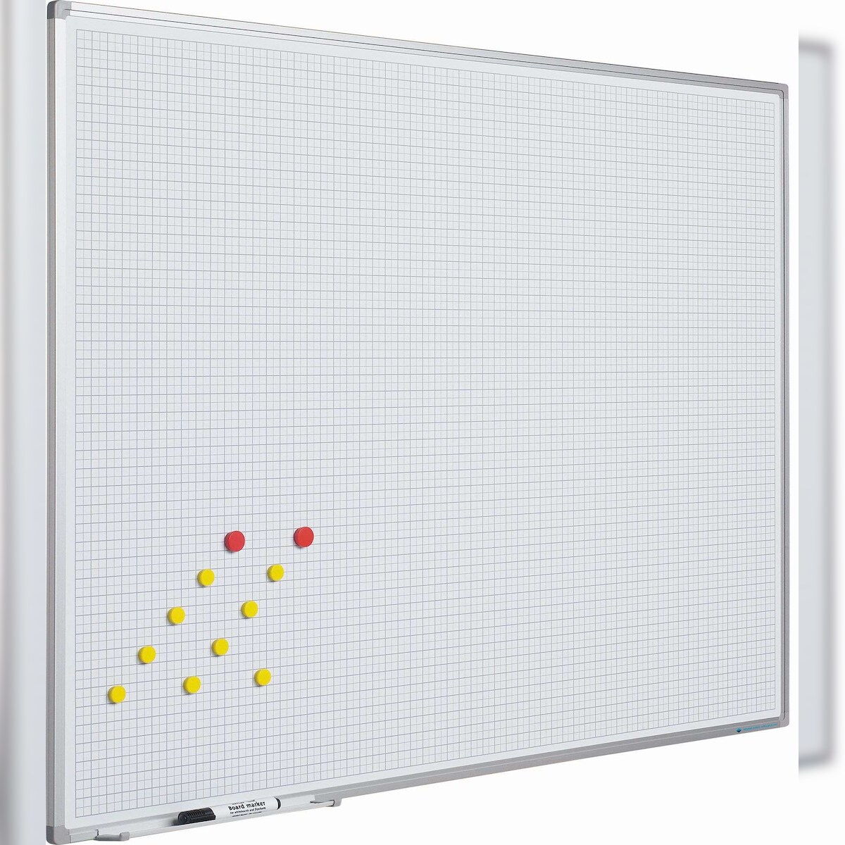 PROREGAL Kariertes magnetisches Whiteboard Slim für intensive Nutzung, HxB 100x200cm, 5x5cm Raster, inkl. Befestigungsmaterial & Stiftablage, Weiß