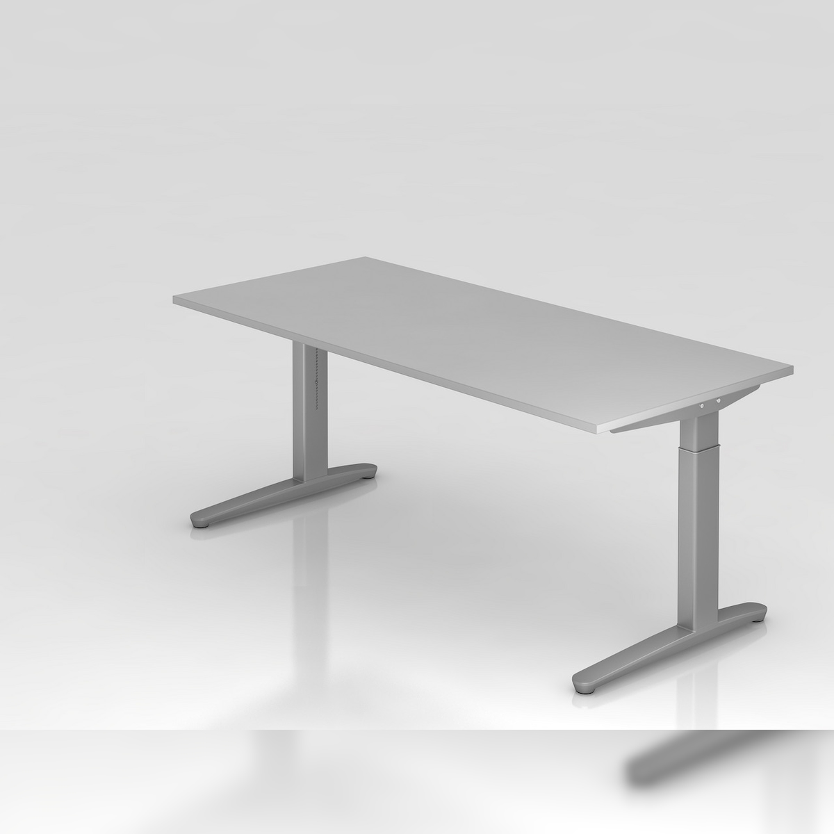PROREGAL Schreibtisch Mika | Grau | Silber Gestell | BxT 180x80cm | Arbeitshöhe 65-85cm | höhenjustierbar, 1cm Raster | C-Fuß-Gestell | Bürotisch
