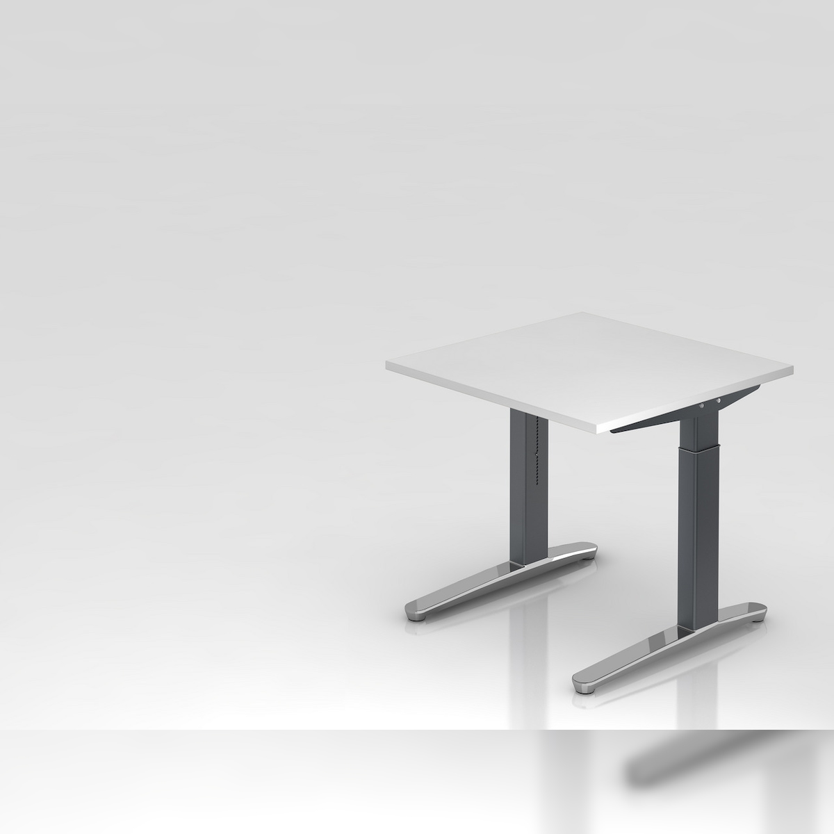 PROREGAL Schreibtisch Mika | Asteiche | Graues Gestell poliert | BxT 80x80cm | Arbeitshöhe 65-85cm | höhenjustierbar, 1cm Raster | C-Fuß-Gestell
