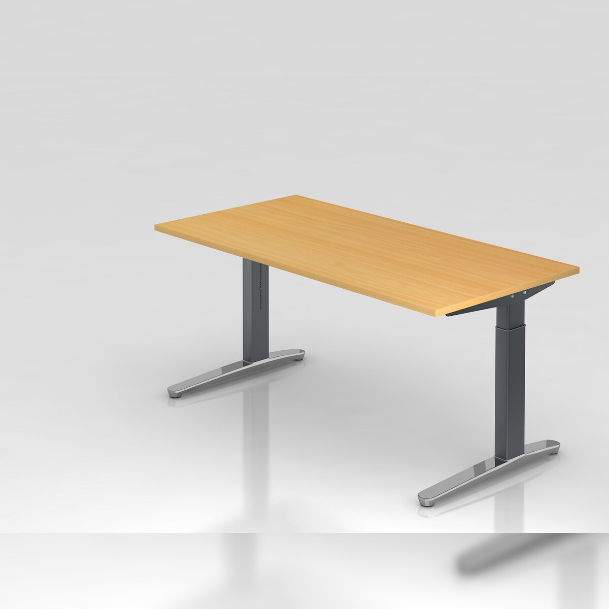 PROREGAL Schreibtisch Mika | Buche | Graues Gestell | BxT 160x80cm | Arbeitshöhe 65-85cm | höhenjustierbar, 1cm Raster | C-Fuß-Gestell | Bürotisch