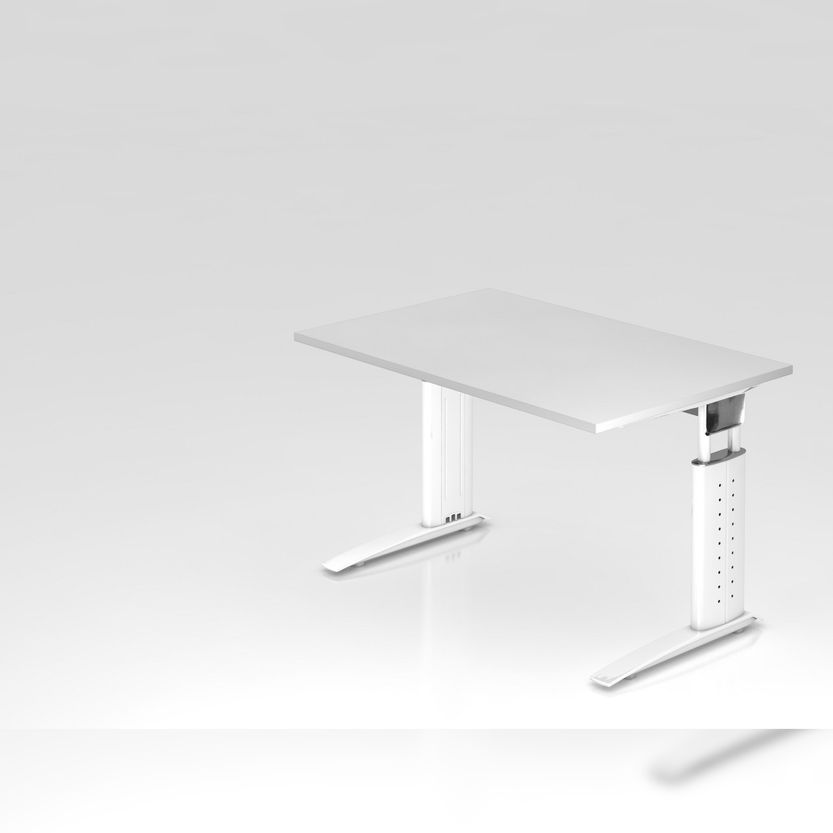 PROREGAL Schreibtisch Mauri | Weiß | Weißes Gestell | BxT 120x80cm | Arbeitshöhe 68-86cm | höhenjustierbar, 2cm Raster | C-Fuß-Gestell | Bürotisch
