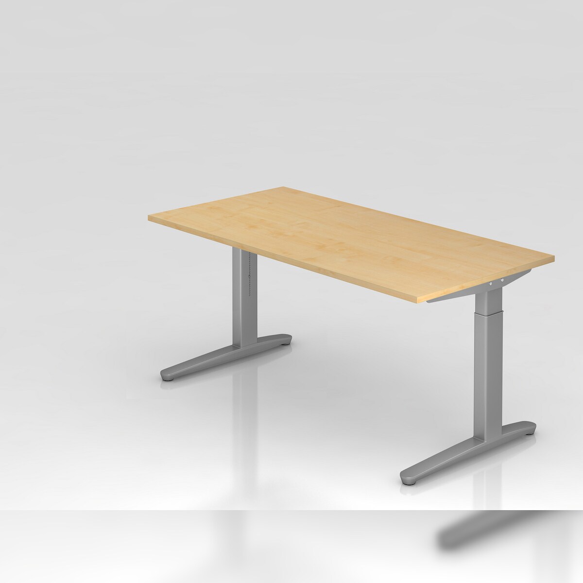 PROREGAL Schreibtisch Mauri | Ahorn | Silber Gestell | BxT 180x80cm | Arbeitshöhe 68-86cm | höhenjustierbar, 2cm Raster | C-Fuß-Gestell