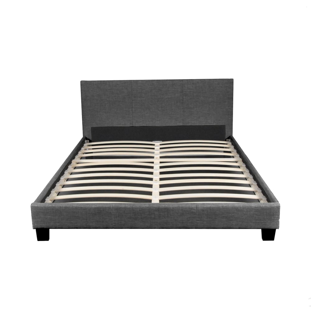 Ab Store Letto Matrimoniale con Testiera Imbottita e rete a Doghe, Lino, 140x200 cm, Grigio