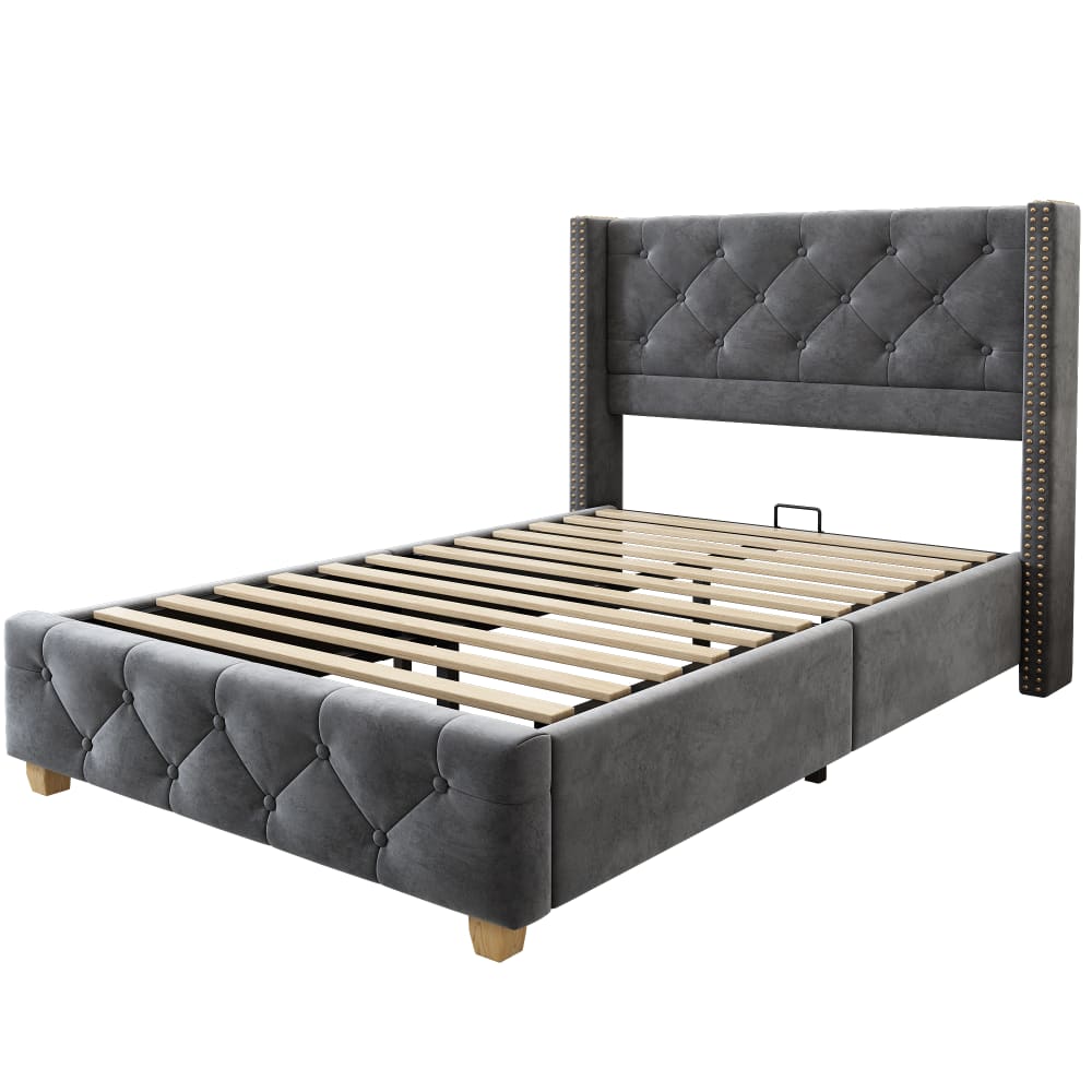 Letto contenitore in tessuto grigio scuro con rete a doghe 200x200 cm