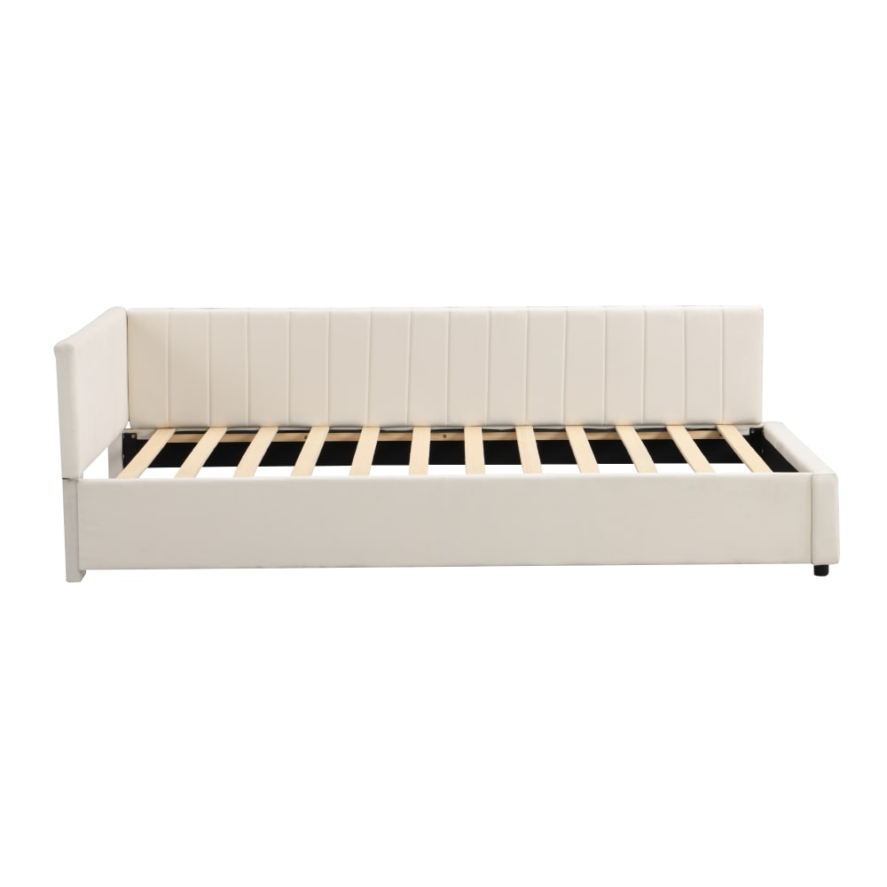 Letto per bambini in velluto beige 90x200 cm con rete a doghe
