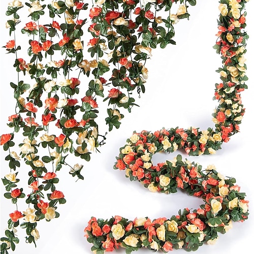 Ghirlanda di fiori artificiali da 8 x 8,2 piedi, rose rampicanti con foglie verdi, rose finte appese, per decorazioni da parete ad arco per feste in camera, casa, matrimonio, compleanno, Natale,