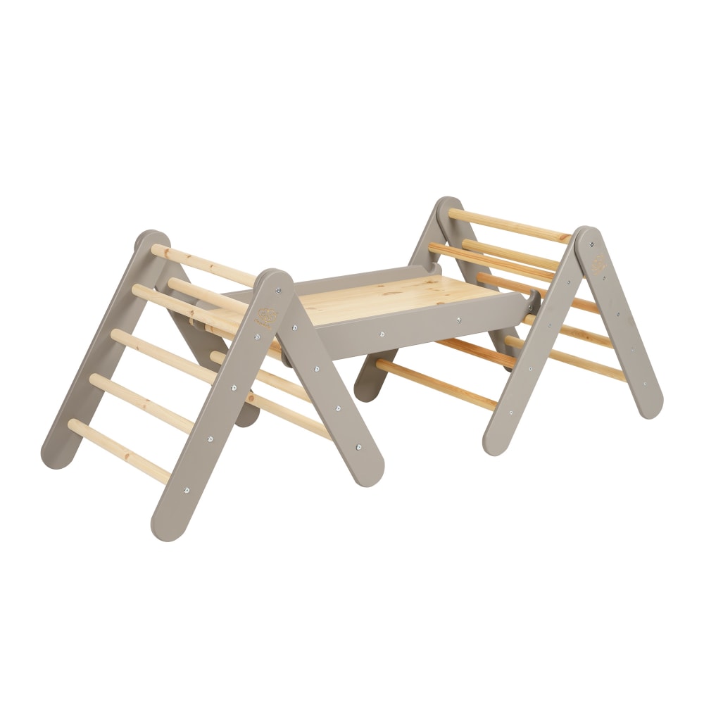 Triangolo da arrampicata con scivolo e parete da arrampicata grigio