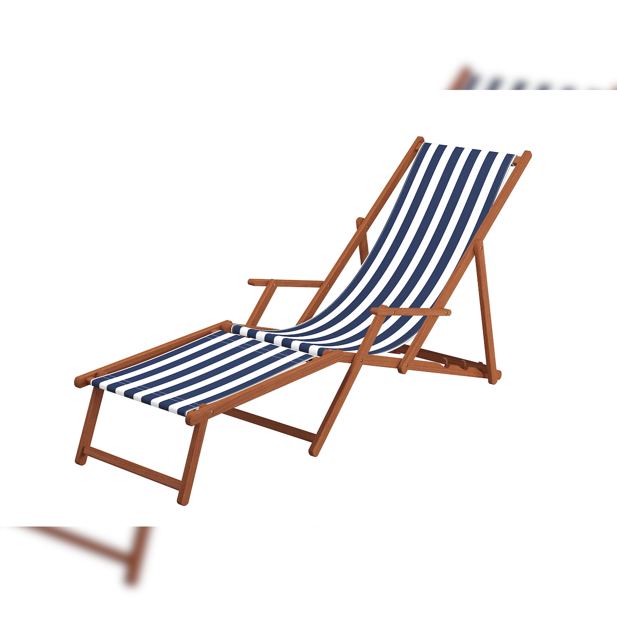 Erst-Holz Liegestuhl Gartenliege blau-weiß Fußablage Kissen Sonnenliege klappbar Deckchair Buche 10-317FKH