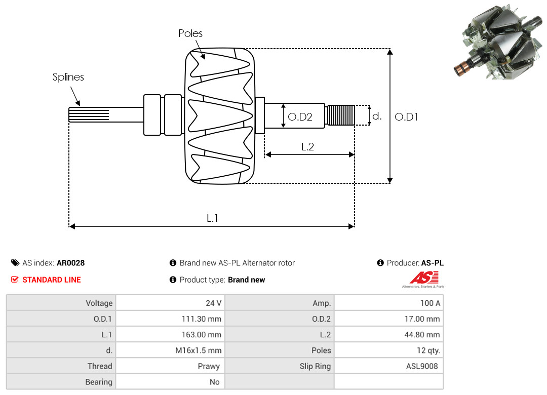 AS-PL Läufer, Generator Universal 24V 100A 111,30mm für DAF IVECO MAN 1600337 1604170 160417 AR0028