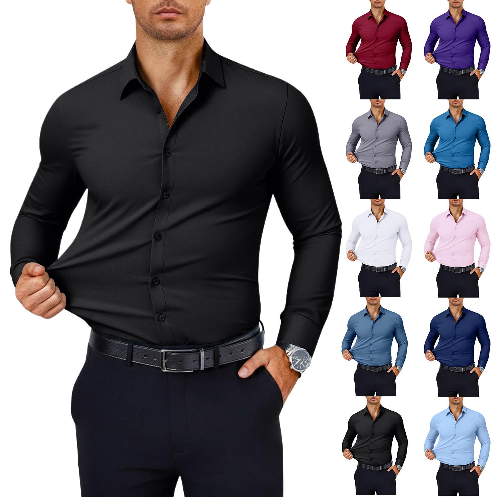 Heren Muscle Fit Overhemden Kreukvrij Lange Mouw Casual Button Down Overhemden cm wit