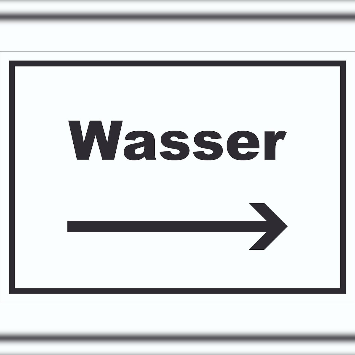 HB-Druck Wasser Schild mit Text und Richtungspfeil rechts Anschluss waagerecht A1 (594x841mm)