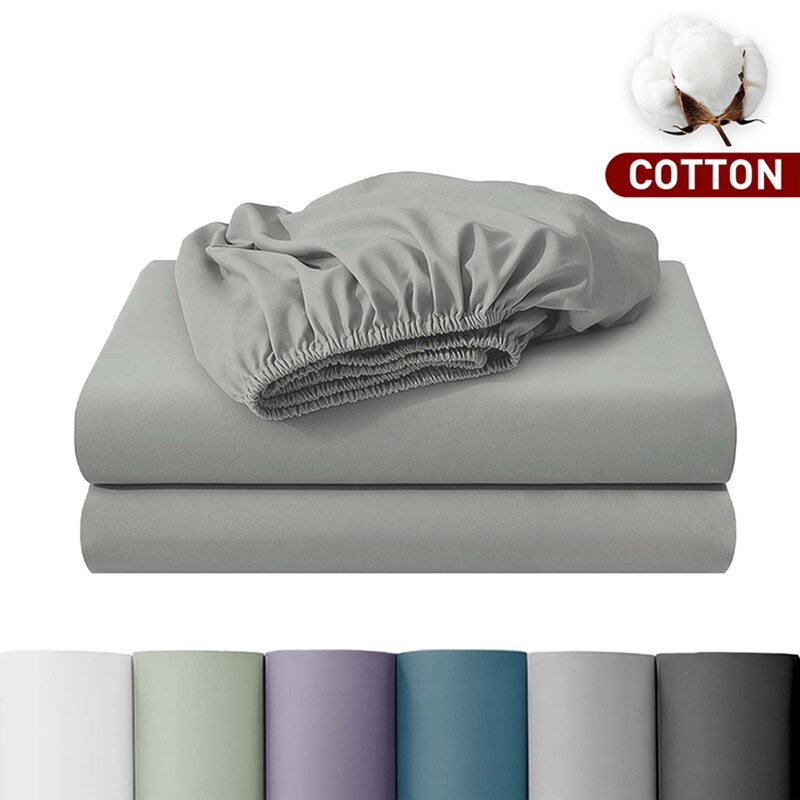 LeBonsoir Drap-housse 135 x 190 cm, hauteur de poche 30 cm, 100 % coton, bords élastiques anti-effilochage - Gris clair