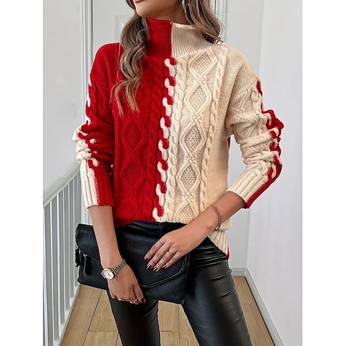 Per donna Felpa Casual Morbido Blocco di colori A Coste Collo alto Lavorato a maglia Manica Lunga Top Regolari Maglia All'aperto Quotidiano Weekend Nero Rosso Autunno Inverno