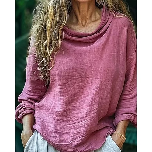 Per donna Blusa Top Eleganti Tinta unica Semplice Elegante Vintage Quotidiano Manica Lunga Collo Alto Top Regolari Lavoro Quotidiano Ferie Arricciato Drappeggiato Blu Rosa cipria Nero Rosa Grigio
