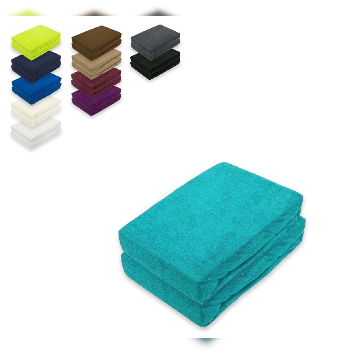 EXKLUSIV HEIMTEXTIL Frottee Spannbettlaken Doppelpack 180 - 200 x 200 cm Türkis