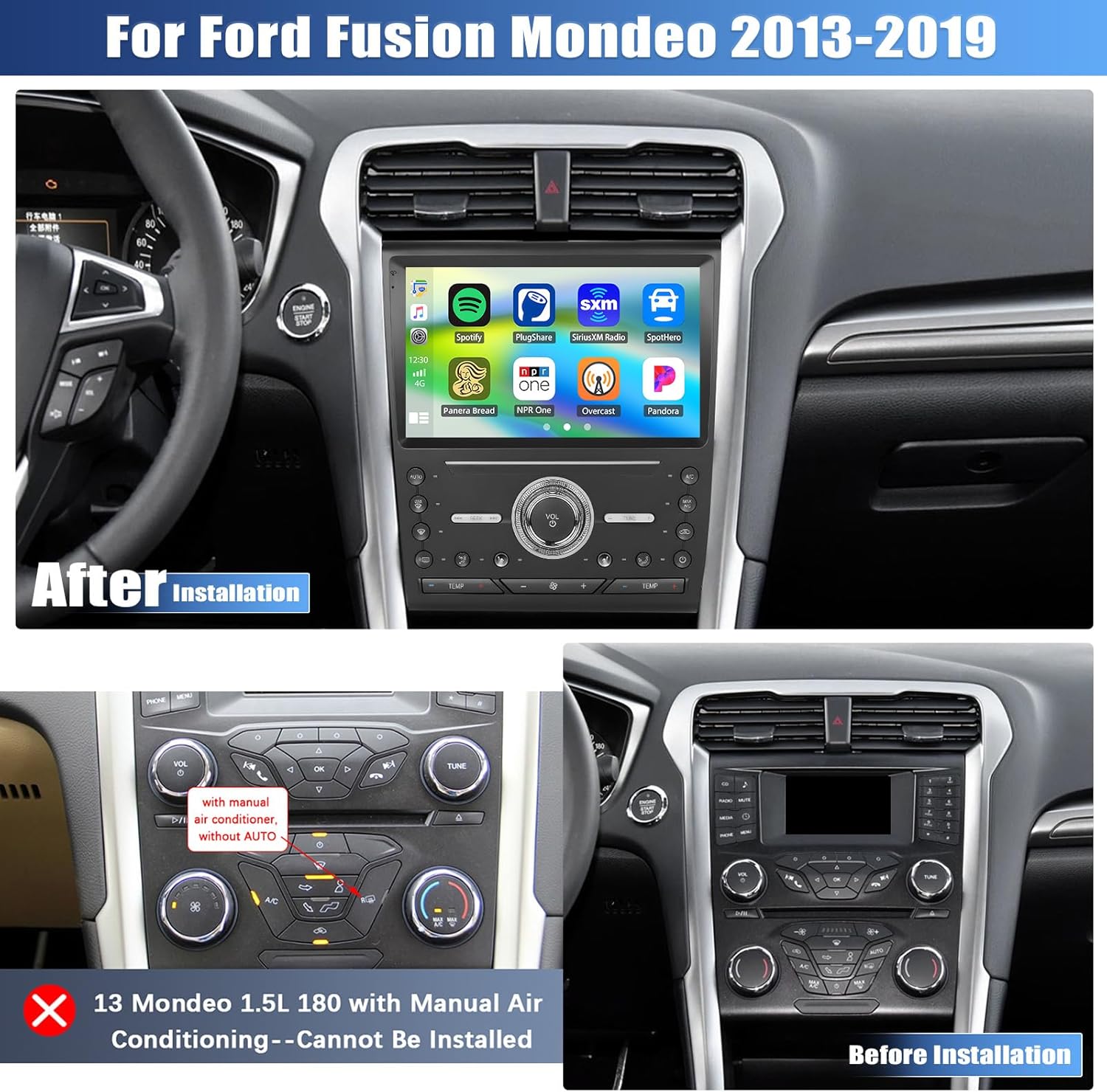 9-tommers HD-bilradio for Ford Fusion Mondeo 2013-2019, Android 13, trådløs CarPlay og Android Auto, WiFi GPS, Bluetooth, FM/RDS, SWC,
