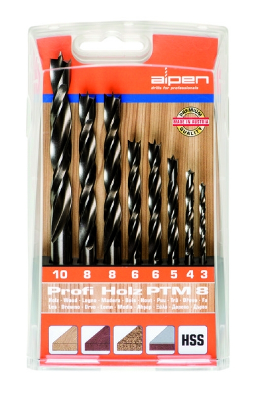 Holzbohrersatz 3, 5, 6, 8, 10mm , HSS-G für Hartholz