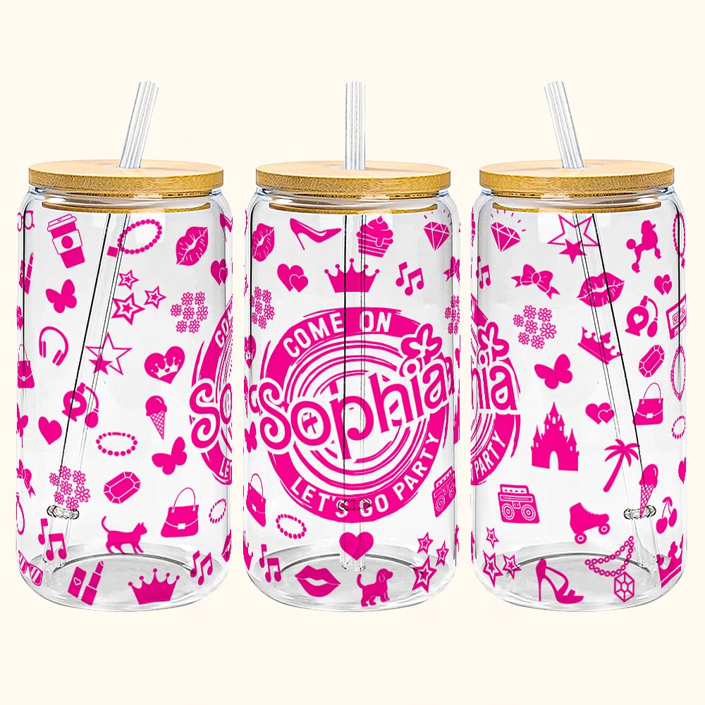 Personlig 20 oz Hot Pink Fashion Girl Glass Tumbler med lokk og sugerør Bursdag julegave til barn eller bryllupsgave til utdrikningslag