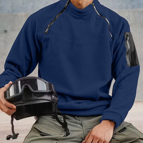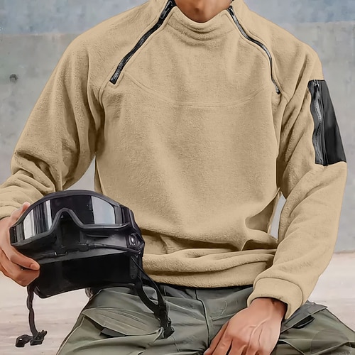 Per uomo Maglia Felpa con cappuccio in pile Felpa con zip corta Felpa con cappuccio tattica Nero Verde militare Blu marino Grigio scuro Beige Colletto Mao Semplice Cerniera Sport Outdoor Casuale