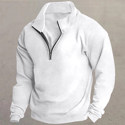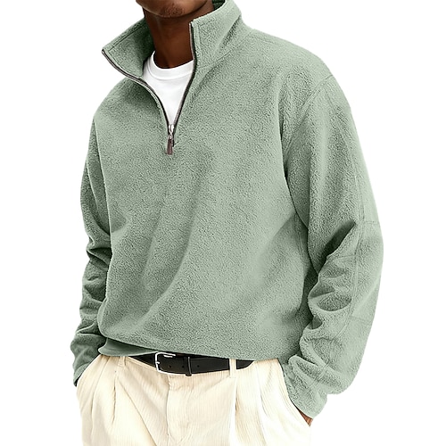 Per uomo Maglia Felpa in pile Maglione Felpa con zip corta Nero Bianco Verde militare Blu marino Cammello Colletto Mao Semplice Tasca a marsupio Sport Outdoor Casuale Quotidiano Streetwear Cool