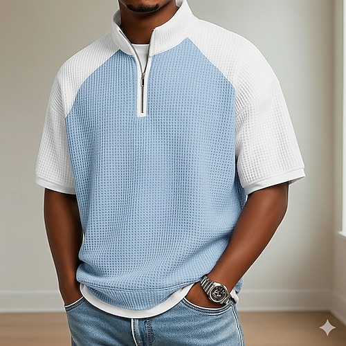 Per uomo Magliette Polo a Nido d'Ape Casuale Ferie Colletto Mao Manica Corta Essenziale Moderno Plaid Blocco di colori Blocco di colore Bottoni Estate Primavera Vestibilità comoda Blu Nero Blu marino