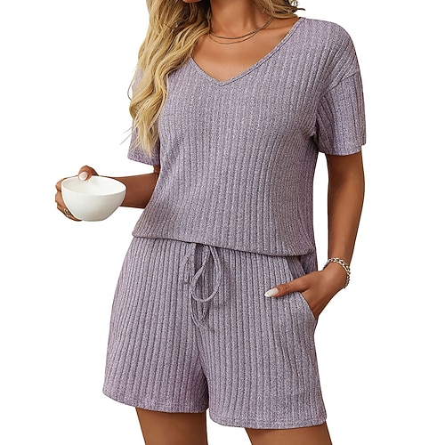 Per donna Set di Pantaloncini Bolero Top Manica Corta Scollo a V Semplice Coulisse Patchwork Elegante Moda Streetwear Casuale Quotidiano All'aperto Nero Rosa scuro Viola Estate Vestibilità regolare