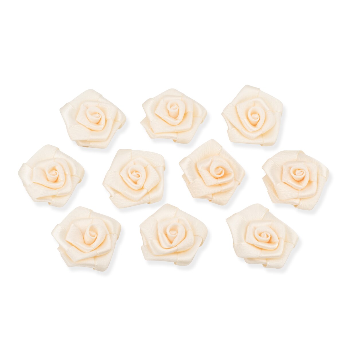 Creativery Satinrosen 3cm 10 Stück Stoffblumen zum Basteln Dekorieren Hochzeit Geschenkverpackung Blütendeko Tischdeko Handarbeit Stoffrosen Deko Blumen Creme
