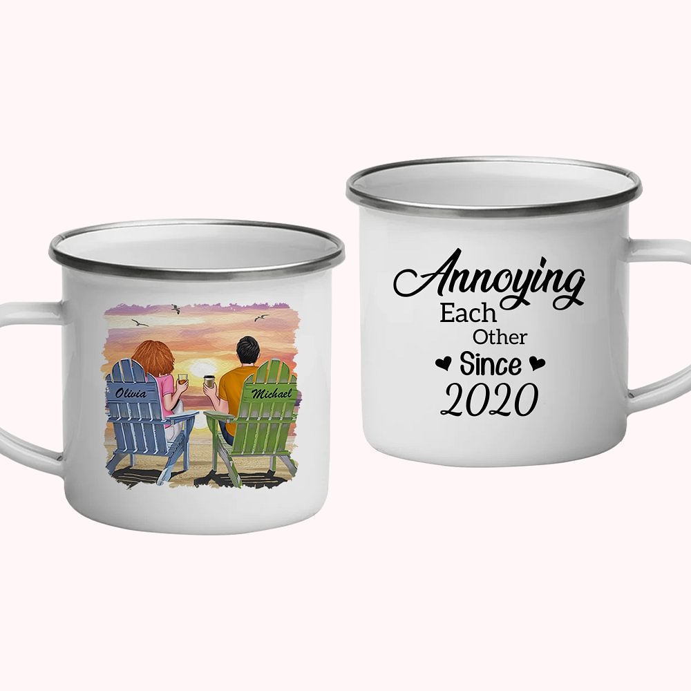 Tazza smaltata personalizzata per il tramonto sulla spiaggia, forte e durevole, regalo di compleanno per l'anniversario.