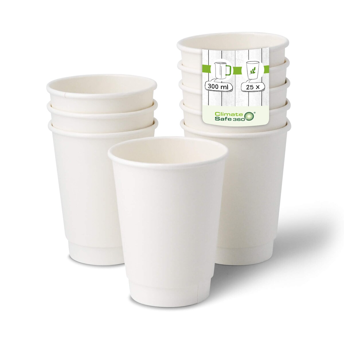 greenbox - Kaffee to go Becher aus Pappe, doppelwandig, 300 ml / 12 oz, Ø 90 mm, weiß, 25 St.