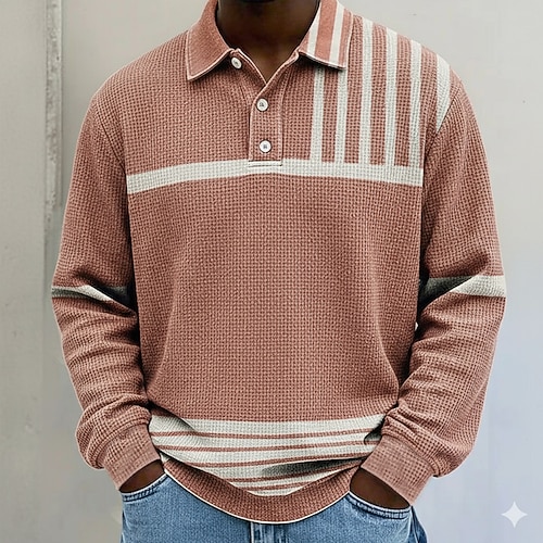 Per uomo Strisce orizzontali Magliette Polo a Nido d'Ape Polo da Rugby Manica Lunga Magliette polo Camicie con Colletto Casual Athleisure Abbigliamento quotidiano Bottoni Primavera Autunno Inverno