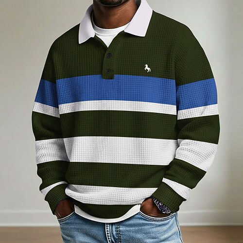 Per uomo Strisce orizzontali Magliette Polo a Nido d'Ape Polo da rugby Testurizzato Manica Lunga Magliette polo Bavero Abbigliamento Sportivo Casual Scuola Athleisure Abbigliamento quotidiano Stampa