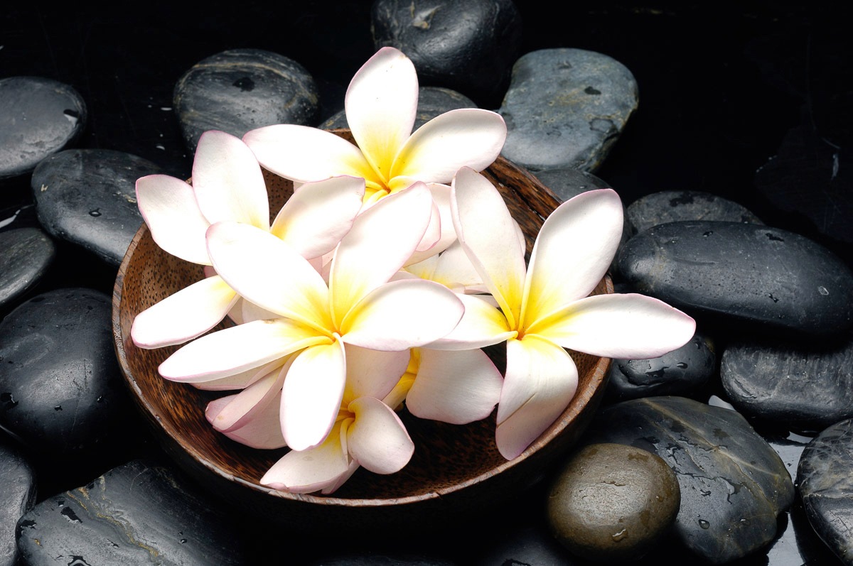 Fototapete PAPERMOON "Blumen mit Steinen", bunt, B:4,50m L:2,80m, Vlies, Tapeten