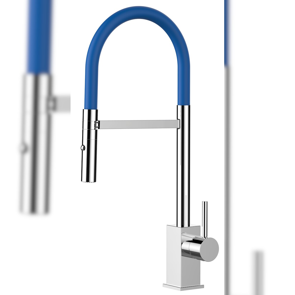 Vizio Wasserhahn Küchenarmatur Spültischmischer, Verchromt mit 360° schwenkbarem Blau Auslauf, abnehmbare 2 strahl Handbrause, Quadratisches Design